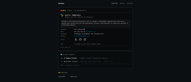 A minimal personal developer portfolio template built with Astro, Shadcn-UI, Tailwind CSS, and React.