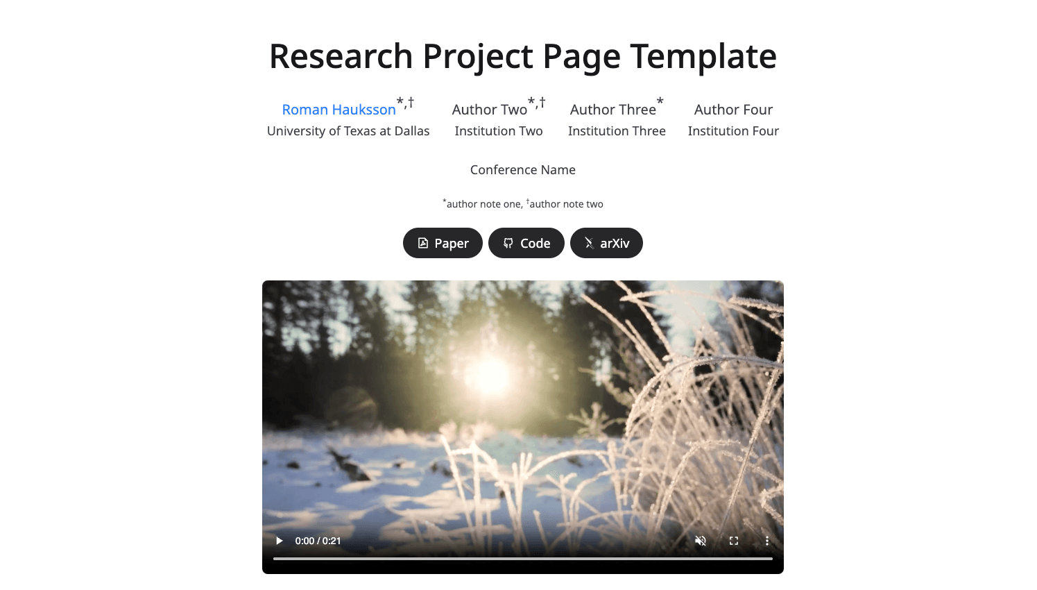 This is a template you can use to build a project page for your research paper, adapted from the original Nerfies page. It's designed to be easy to set up for those without web development experience, but web developers will appreciate that it's flexible and built with modern, familiar technologies.