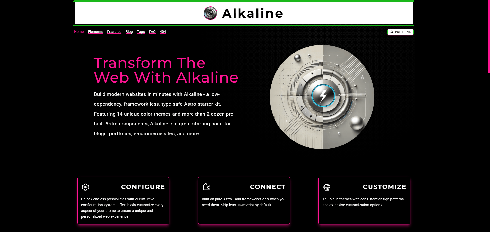 I built Alkaline to be the theme I wished existed when I first started in web development: Simple to set up, easy to customize, yet powerful enough to grow with any project. Out of the box, it scores a perfect 100 on Lighthouse, giving you performance and accessibility without extra effort. Whether you’re building your first blog, a polished documentation site, your portfolio, or even a complex e-commerce site, Alkaline makes it effortless to launch something fast, flexible, and professional.