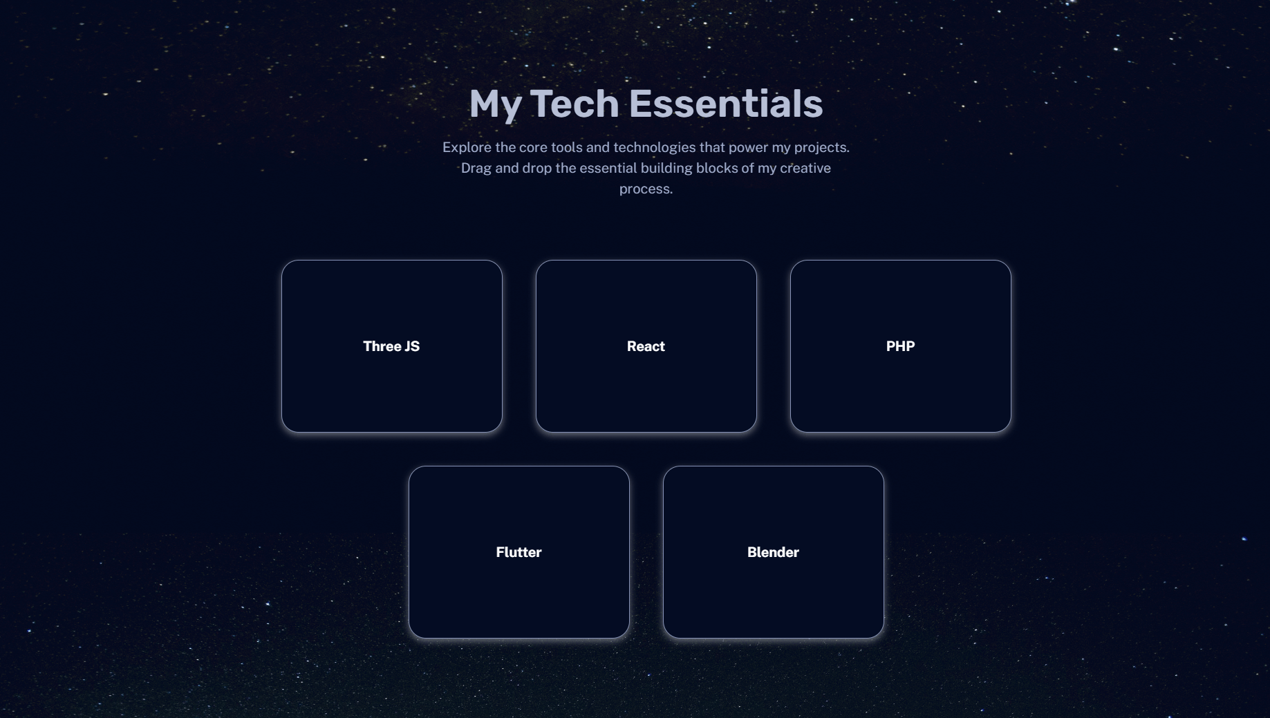 - 3D Graphics with Three.js: The portfolio integrates Three.js, allowing for the display of 3D models, animations, and interactive elements that respond to user input.