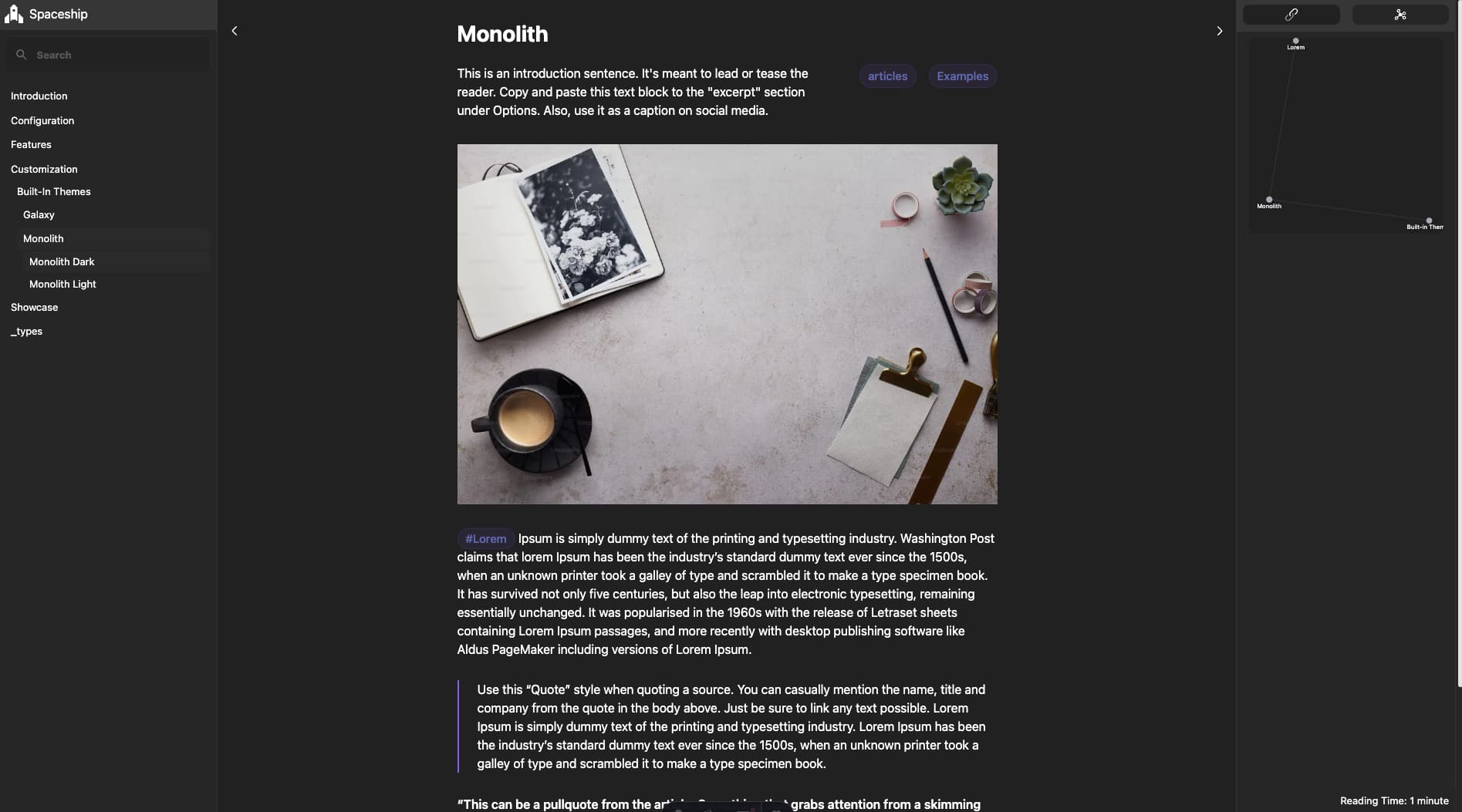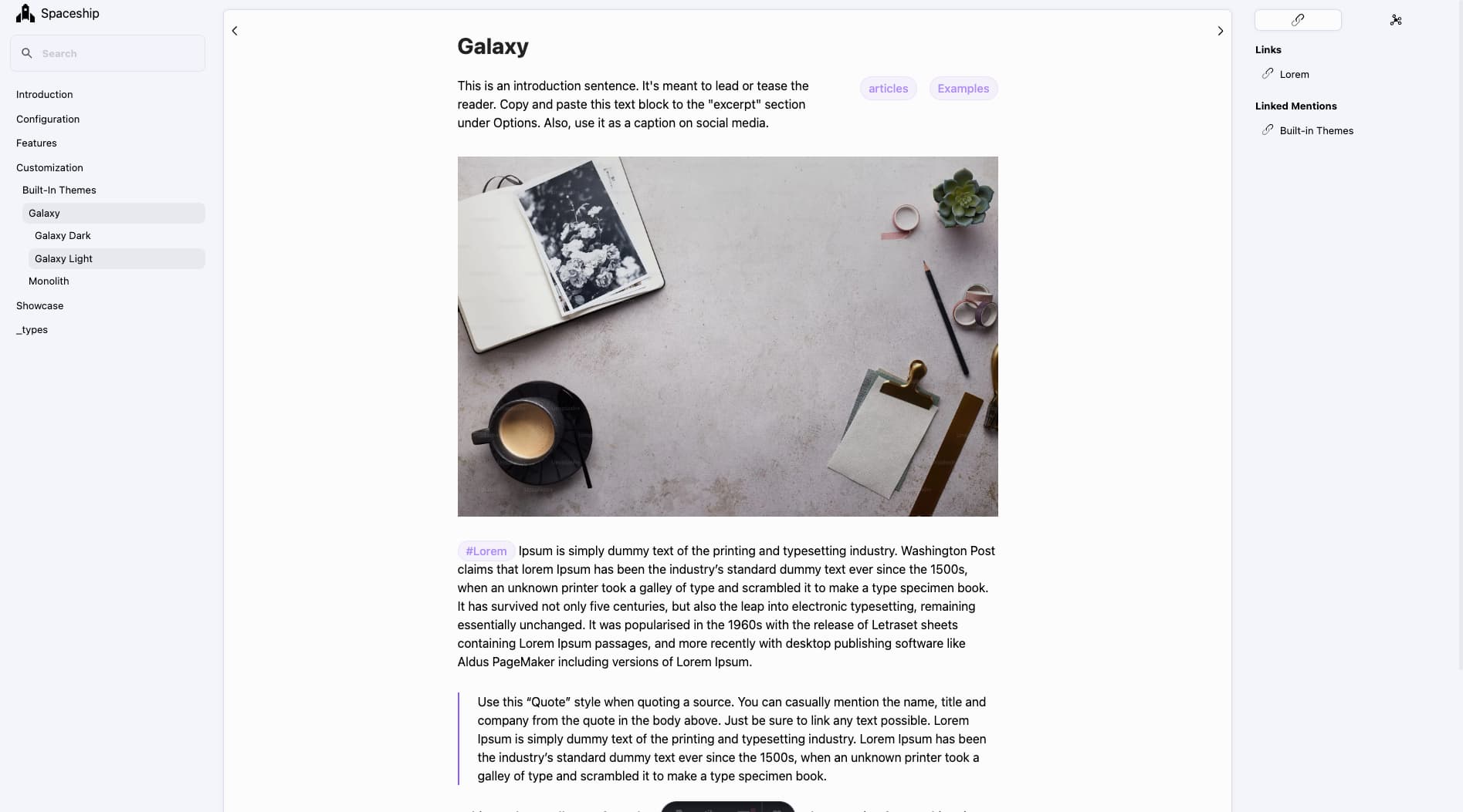 Astro Spaceship is a powerful, minimal, and flexible theme designed for turning your Obsidian vault into a beautiful, static website using Astro and TailwindCSS. Whether you're sharing your digital garden, notes, or a Zettelkasten, this theme helps bring your knowledge to the web with elegance and ease.