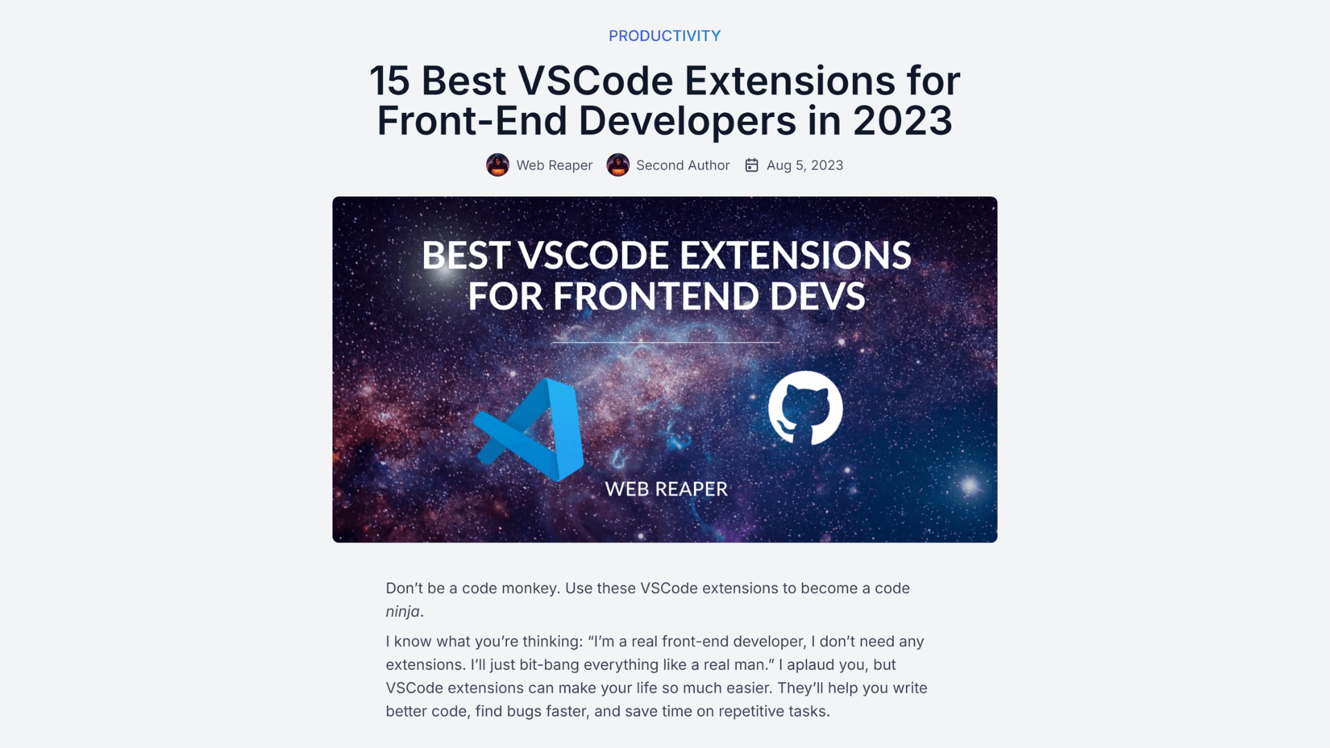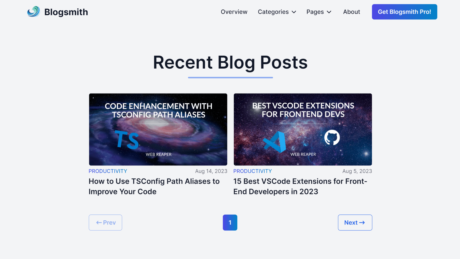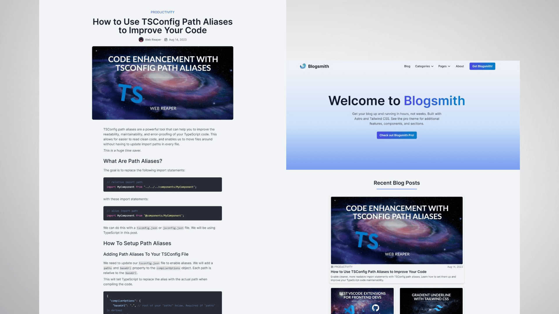 Blogsmith is the perfect way to showcase your writing and connect with your audience. It's built on Astro with Tailwind CSS for styling.
