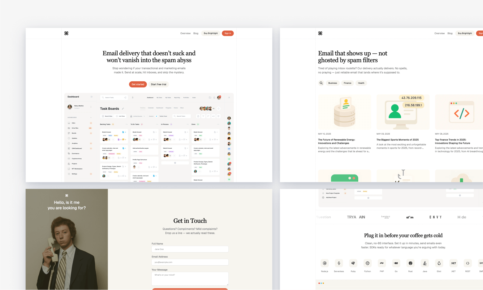 A clean, light-mode SaaS template with warm tones and a polished, modern layout.