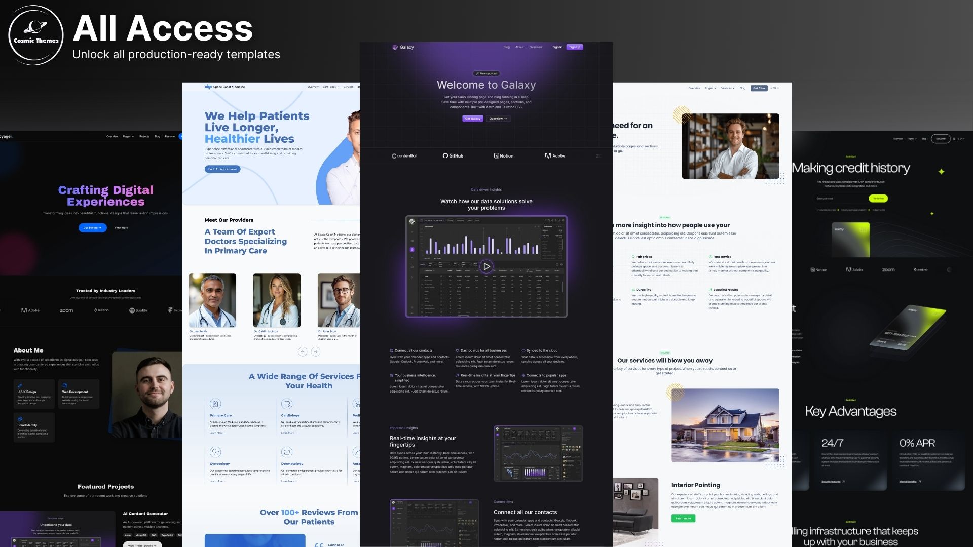 - All current and future themes - every template we create, forever. SaaS, Business, Portfolio, Blog, and more.