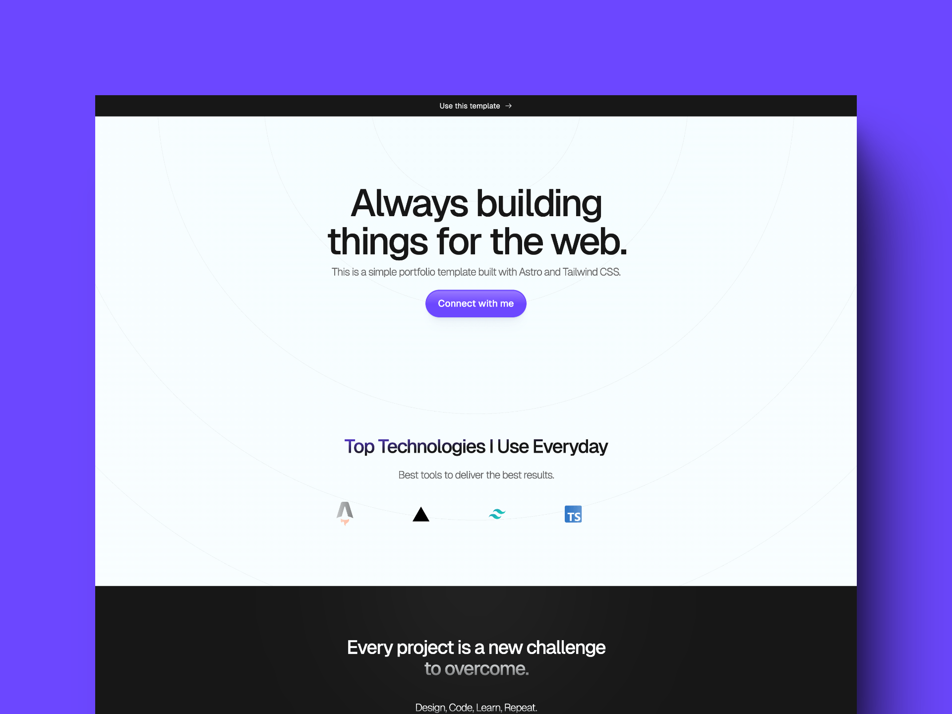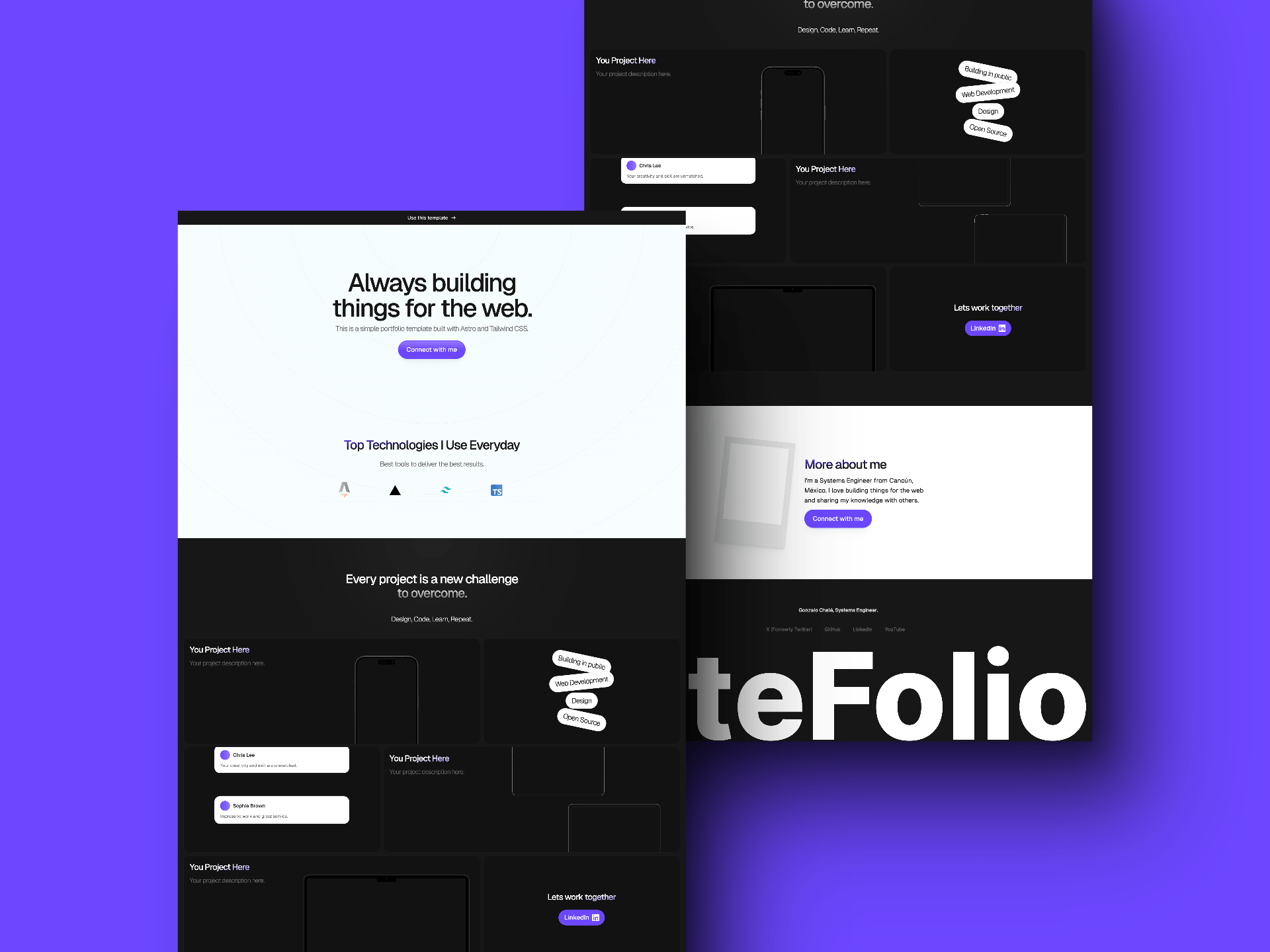 Free portfolio starter template built with Astro and Tailwind CSS.
