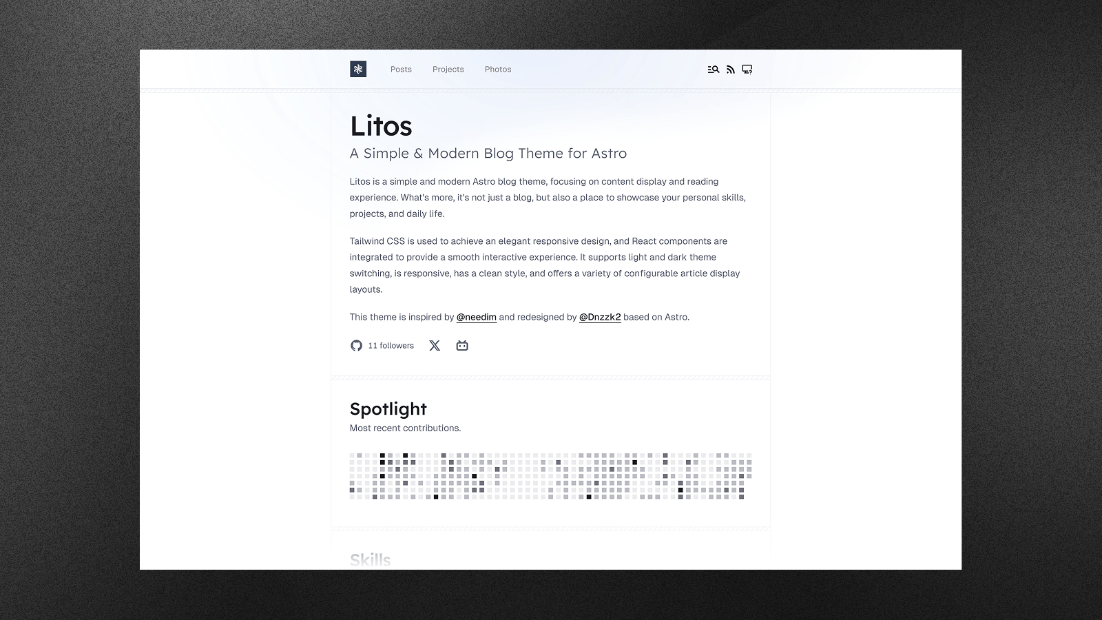 Litos is a modern, high-performance blog theme built on Astro.