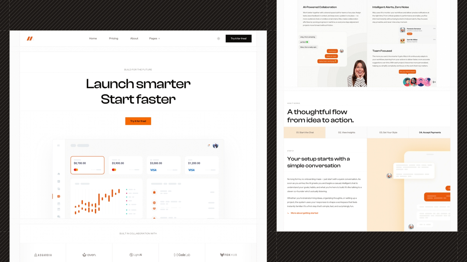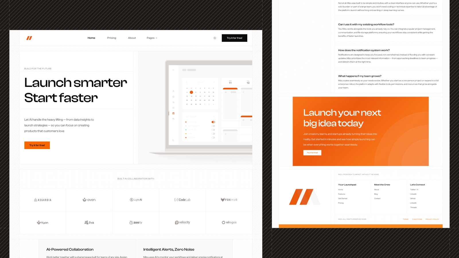 Mizu is a product launch template designed for modern SaaS companies, digital products, and ambitious startups. Whether you’re launching a new app, tool, or platform, Mizu makes it easy to build landing pages that grab attention and turn visitors into early adopters. With its clean design, intuitive layout, and focus on user experience, it’s the perfect solution for promoting beta programs, early access signups, or pre-launch campaigns.