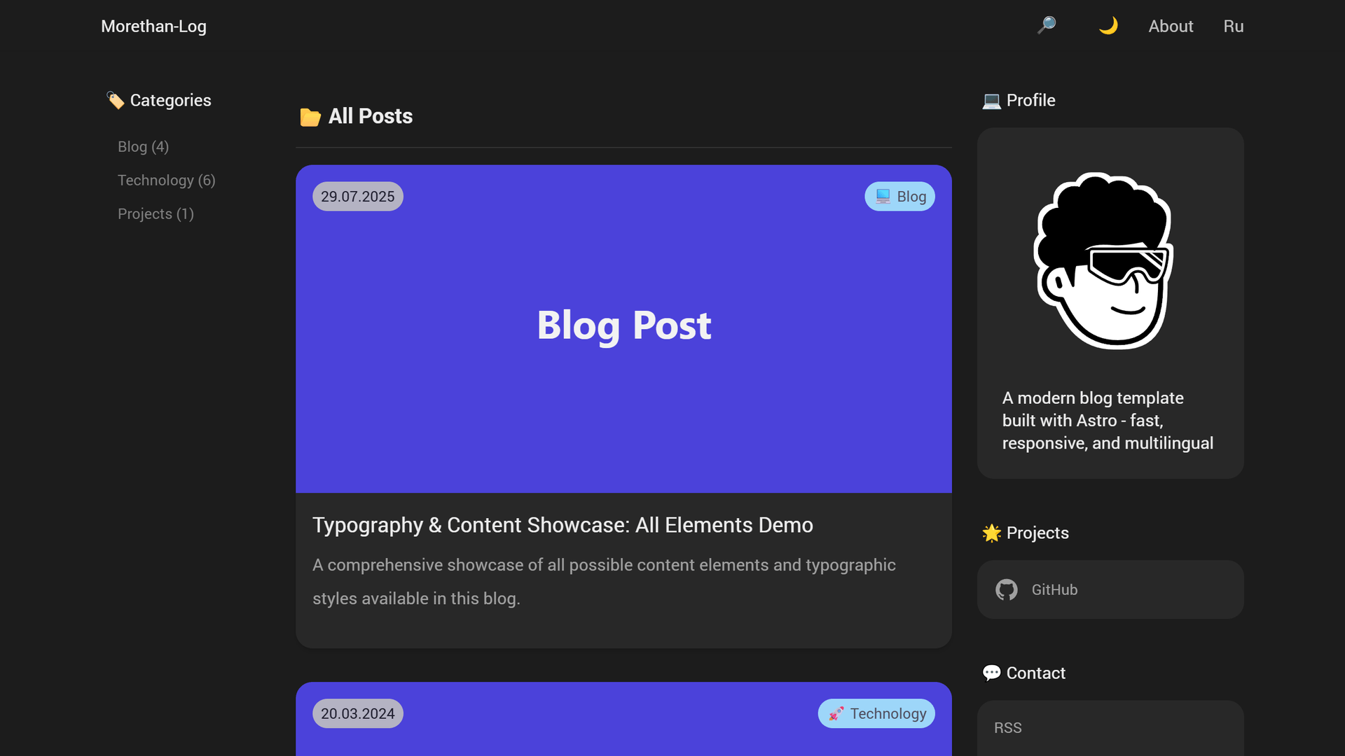 I loved the original morethan-log Next.js template so much that I ported it to Astro for my own site, sereja.com - and open-sourced the result as morethan-log-astro so fellow Astro fans can spin up a blazing-fast blog with the same clean design in seconds.