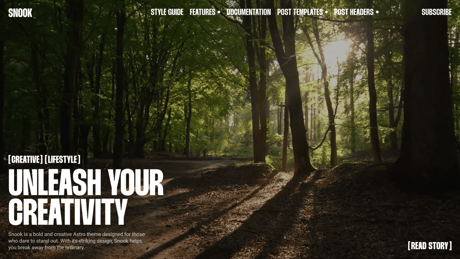 You are granted the right to use the Snook theme for both personal and commercial projects. You may modify the theme to meet the specific needs of your project. The theme license permits unlimited usage, allowing you to use the theme on as many websites or projects as needed, without any limitations. Redistribution, reselling, or sublicensing the theme is strictly prohibited.