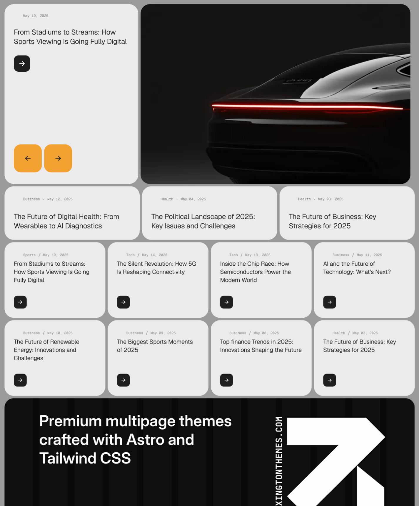 A bold template for newsrooms, bloggers, and audio-first creators.
