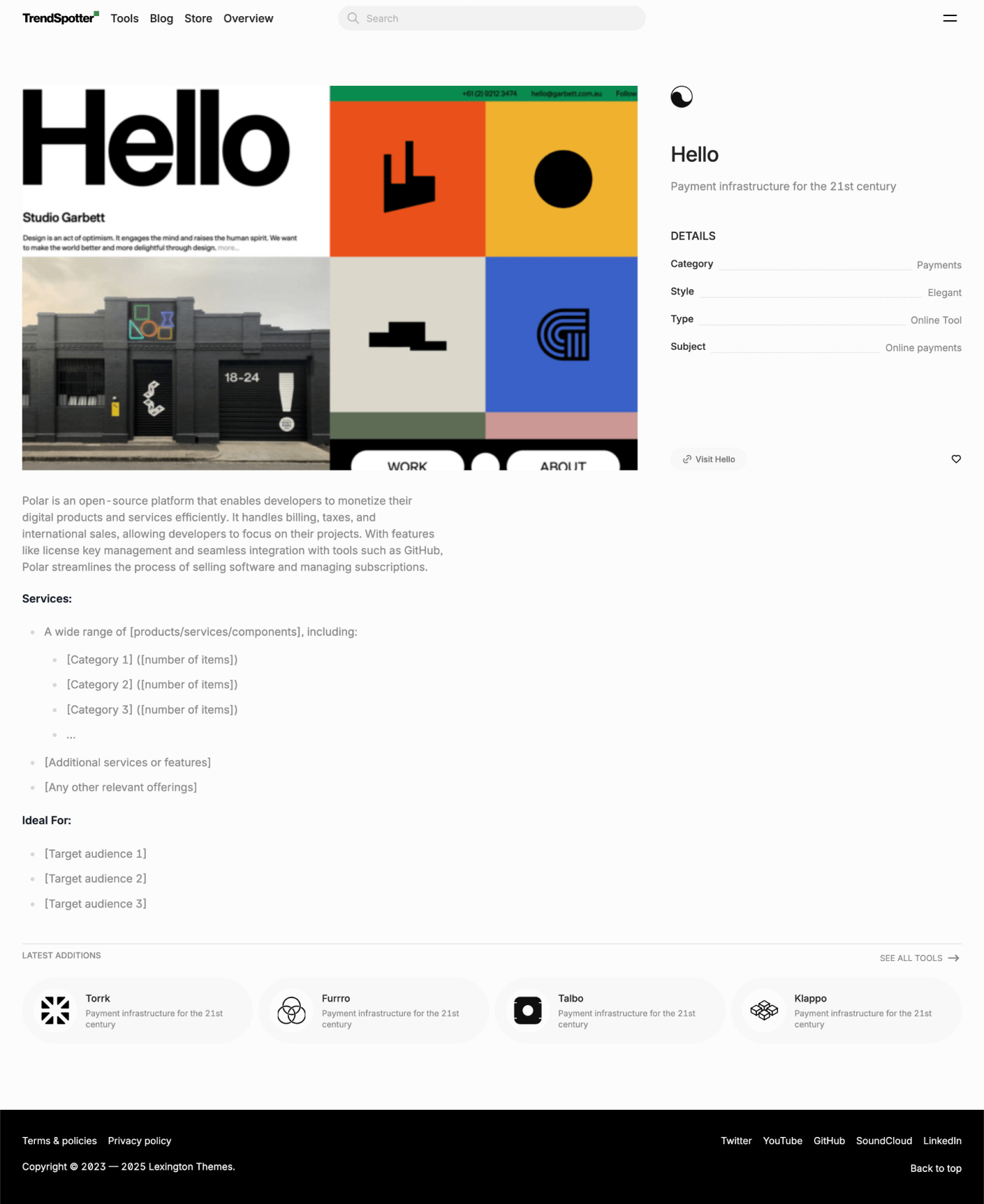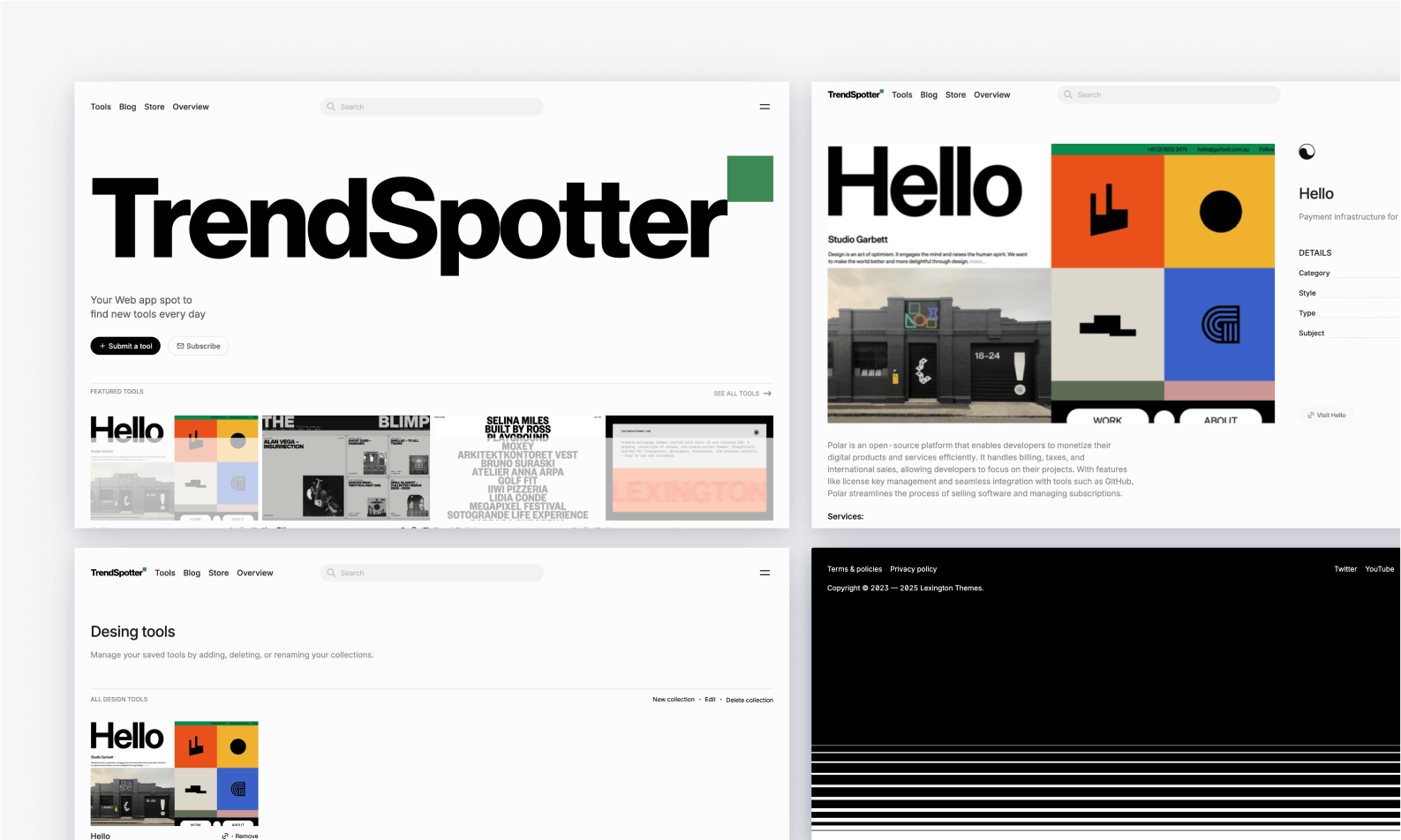 Trendspotter is a template for curated websites, making it easy for users to discover, save, and manage content through a personal dashboard.