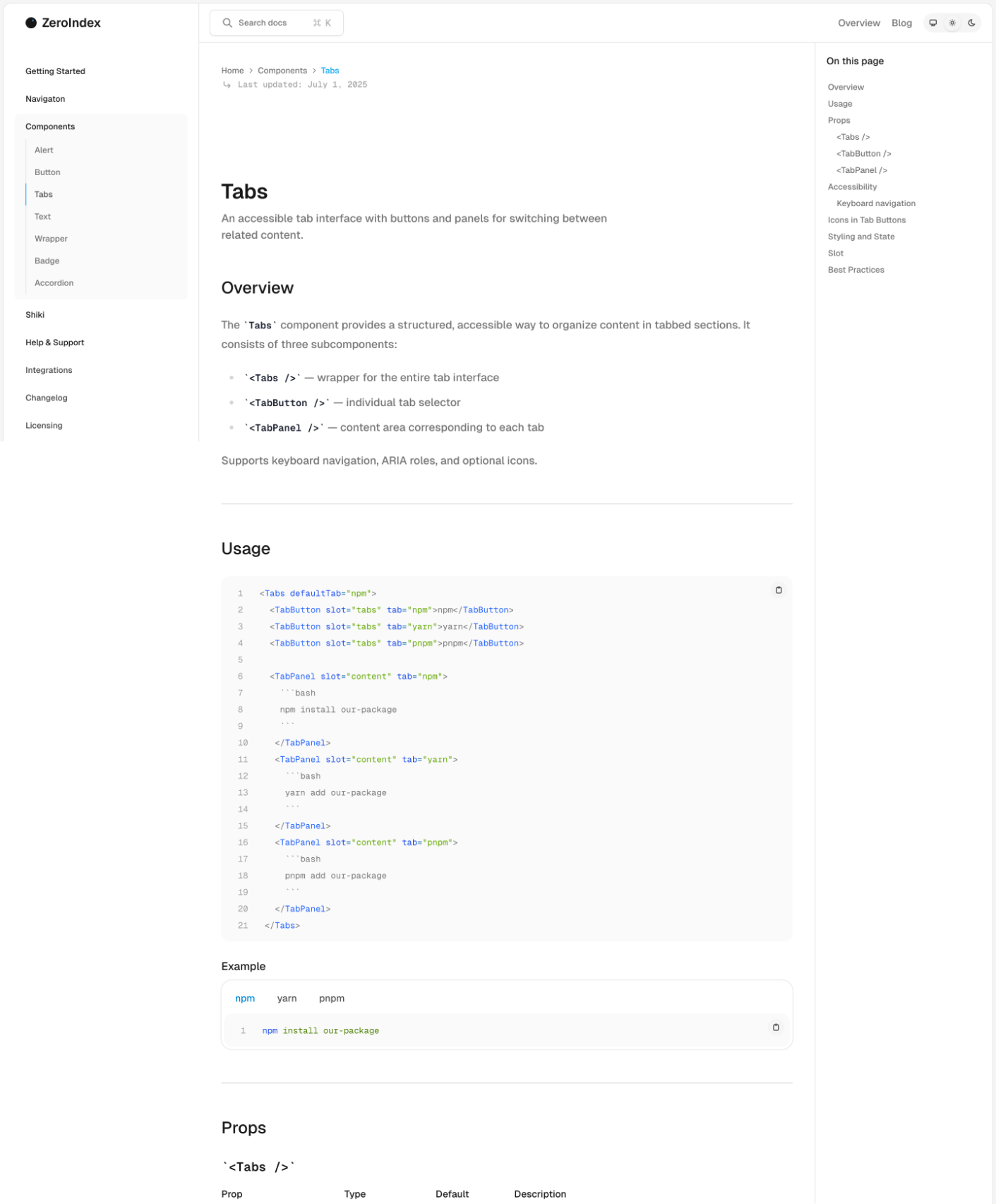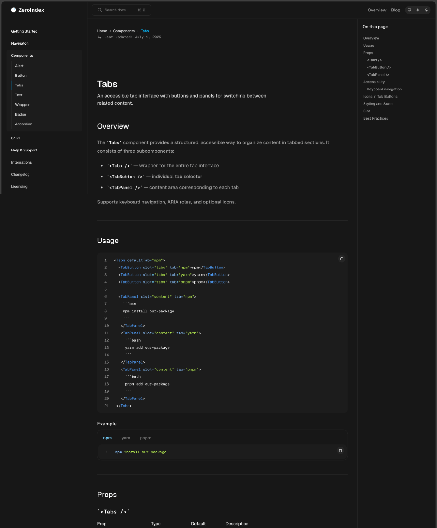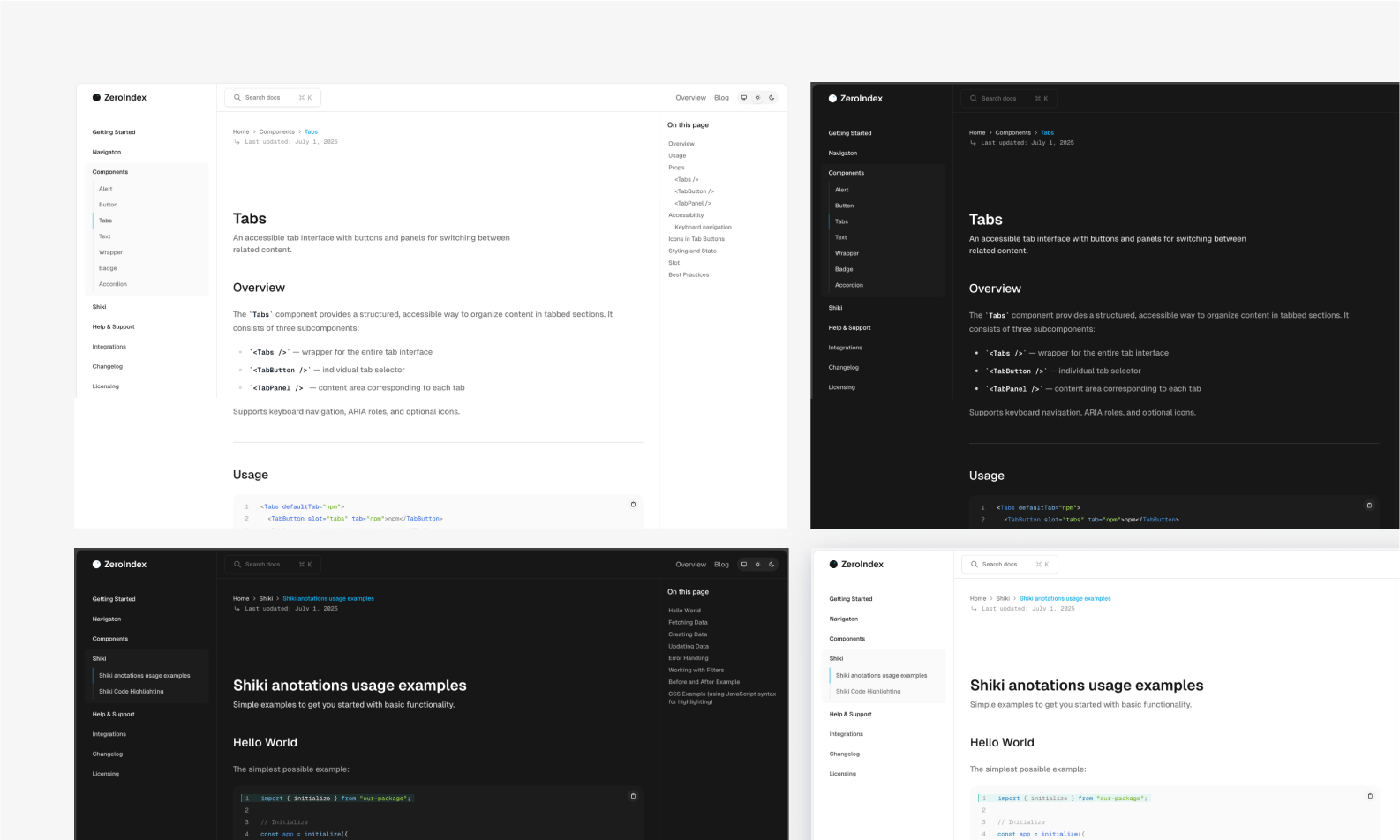 Zero Index is a fast, dual-mode documentation template built for clarity and technical teams.